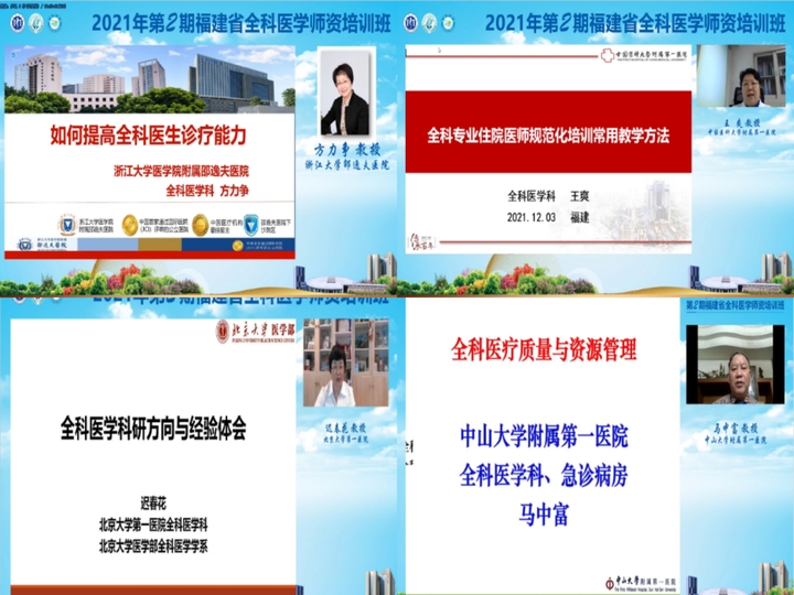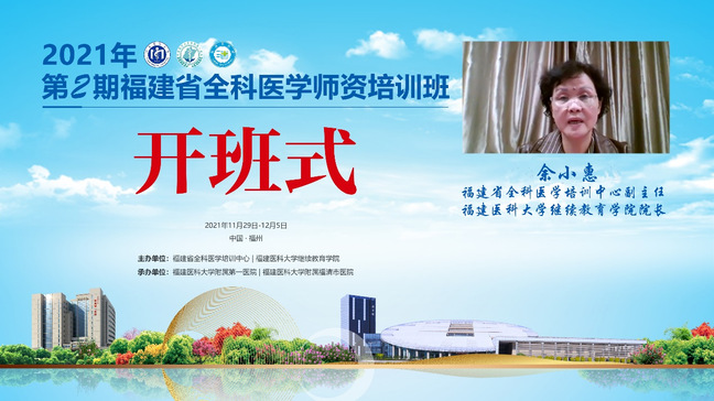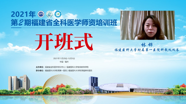 2021年11月29日至12月5日,由挂靠我校的福建省全科医学培训中心及我校继续教育学院主办,我校附属第一医院承办,我校附属福清市医院协办的“2021年第2期福建省全科医学师资培训班”在线上顺利举办。福建省全科医学培训中心副主任、亚洲中文精品乱码继续教育学院余小惠院长,我校附属第一医院医学教育处林桦处长出席培训班开幕式并致辞。
