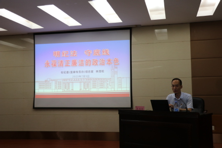 学校纪委(监察专员办)综合室林茂松老师作了题为《明纪法 守底线 永葆清正廉洁的政治本色》的讲座。