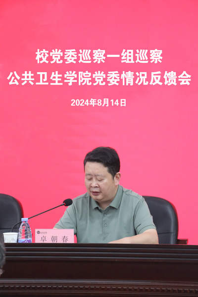 校纪委副书记、纪委(监察专员办)综合室主任、校党委巡察办主任张开泰同志,校党委组织部副部长林为平同志,巡察一组副组长张劲龙同志、蔡皇界同志以及巡察一组的同志出席会议,公共卫生学院党政领导班子、各党支部书记、各学系(办、中心)负责人、部分师生代表参加会议。
