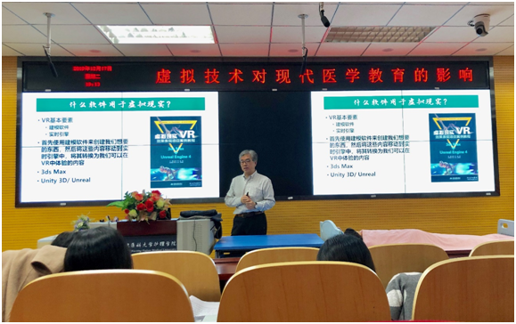 2019年12月17日晚,护理学院于上街校区田家炳楼护理学院示教室,举办以“虚拟技术对现代医学教育的影响”为主题的“研萃学术沙龙。厦门大学汤乐民教授通过解读 VR(Virtual Reality)、AR(Augmented Reality)、MR(Mixed Reality)三者的定义、原理、区别以及在医学教育中的实际使用,详细介绍了虚拟技术在医学教育的应用现状,进一步加深了学院师生对虚拟技术在教学中的认知,对学院开展虚拟仿真实验教学改革具有十分重要的指导意义,师生们受益良多。