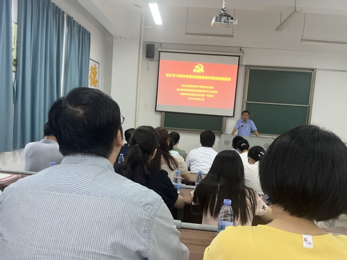 资产管理处党支部黄朝新书记以《强化党纪学习教育争当遵章守纪排头兵》为题上党课,系统阐述了党持之以恒进行纪律建设的创新探索,并紧密联系学校工作实际,结合典型案例,以案为鉴、以案示警、以案明纪、以案促学。中心党支部黄海辉书记指出,党的纪律建设是中国共产党进行自我革命的重要举措,是提高党的组织力、凝聚力和战斗力的必然要求,全体党员应切实把思想和行动统一到习近平总书记重要论述和党中央决策部署上来,坚决拥护“两个确立”、做到“两个维护”,认真扎实开展党纪学习教育,主动自觉学纪、知纪、明纪、守纪,始终做到对党绝对忠诚、绝对纯洁、绝对可靠。