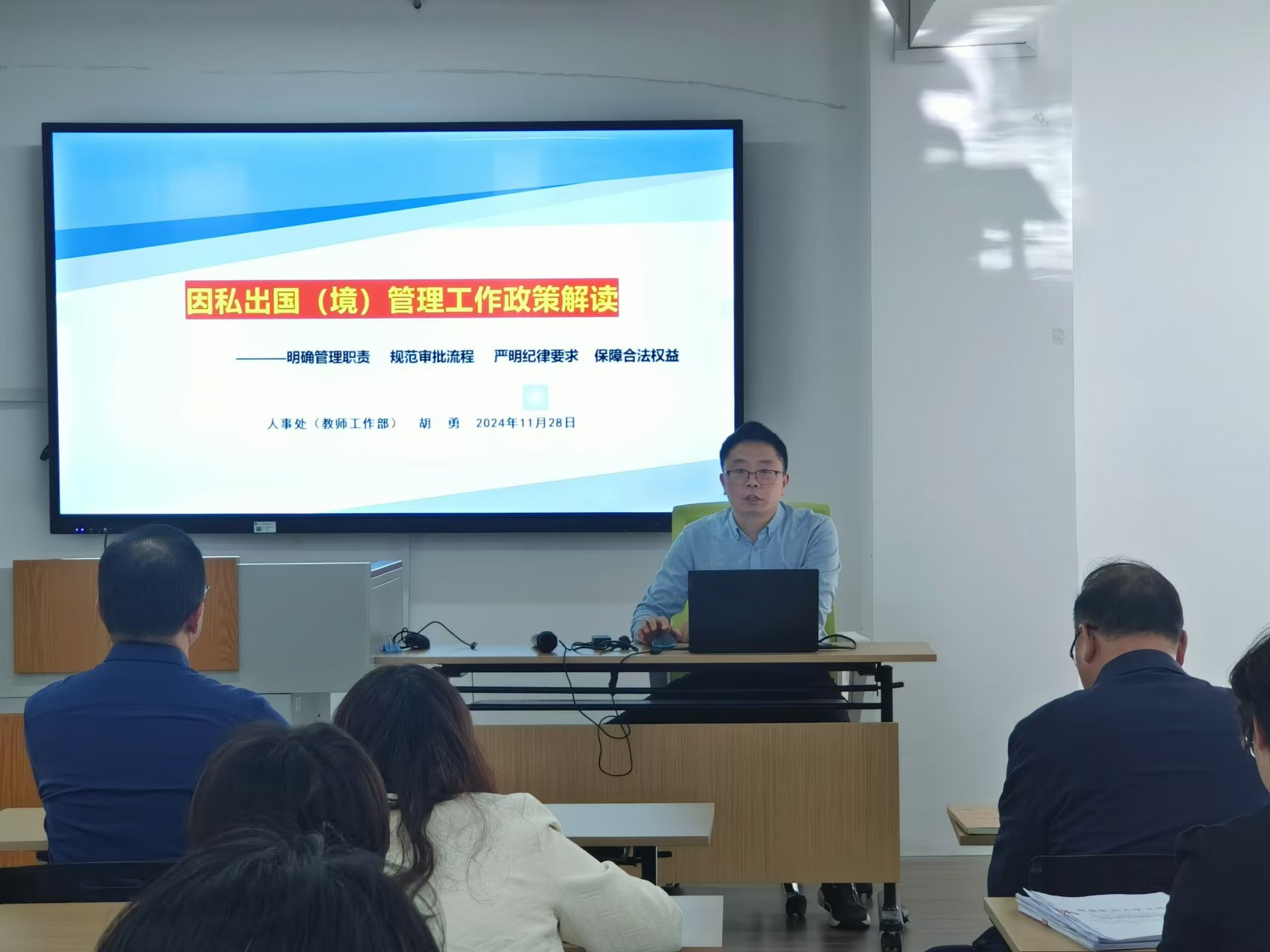 为深入贯彻党的二十届三中全会精神和全国教育大会精神,扎实推进《中共中央 国务院关于弘扬教育家精神加强新时代高素质专业化教师队伍建设的意见》的实施,以实际行动践行“深学争优、敢为争先、实干争效”的工作方针,人事处党支部于2024年11月25日至28日期间开展“人事人才问需送策 助力教师明晰发展路径”主题党日活动,组织机关各部门、各二级学院举办了5场人事人才政策宣讲会。