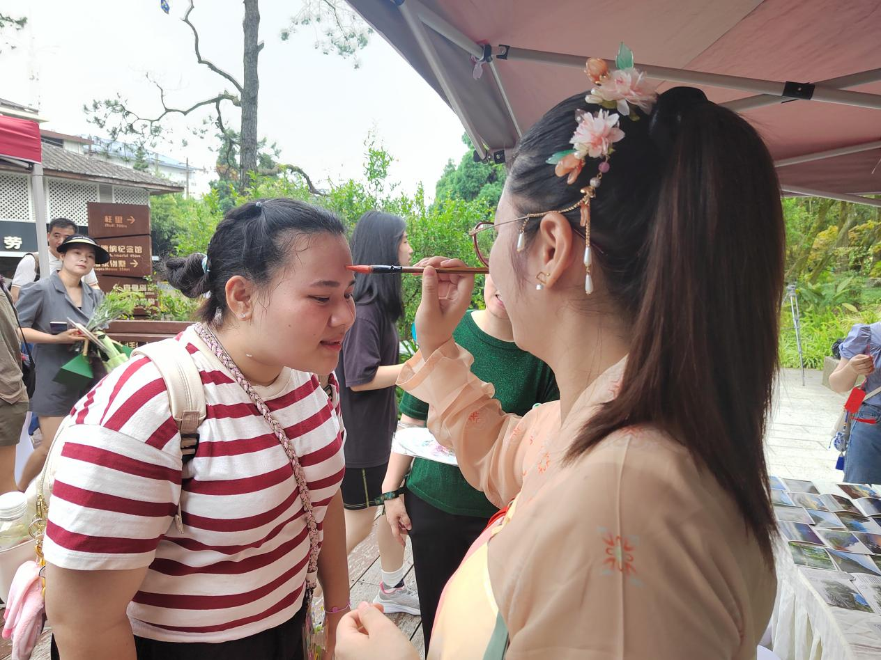 鼓岭美食街文化广场举办端午传统民俗游园活动,设置有五彩粽DIY互动、五彩绳DIY体验、点雄黄、艾草花束DIY互动、艾草香囊DIY体验、一举高“粽”祈福签名等体验区。国际学生通过参与体验包粽子、做香囊、系五彩绳等活动,积极尝试,细心体会,在趣味活动中感受中国传统文化带来的浓浓乐趣,不仅加深对中国传统民俗的认同与理解,更是感受到了中国传统文化的博大精深,进一步激发了对中国文化的兴趣和热爱。