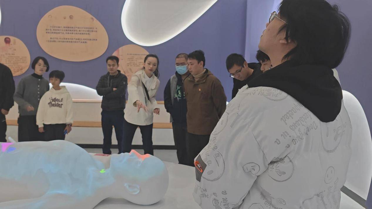 不久前,福建省漳州科技馆(新馆)正式开馆。实践队一行走进这座科技、艺术、趣味融合的“新地标”,共同感受科技魅力。在讲解员的带领下,实践队参观了基础科学、大国重器、智能生活、人体科学、公共安全、宇宙天文等主题展厅,并且亲身体验了部分互动场景。在人体科学展厅,实践队员们充分发挥自身临床医学专业优势,以生动有趣、通俗易懂的方式,向参观的群众深入浅出地讲解人体构造、器官功能、基因遗传等医学科普知识。他们用贴近生活的例子、幽默风趣的语言,将原本晦涩难懂的医学知识变得生动形象,让医学科普真正走进群众、深入基层。实践队员们纷纷感慨,在建设健康中国的伟大征程中,医学科普具有不可替代的重要意义和独特作用。把医学科学知识以浅显易懂的方式传播给广大群众,增强全民健康意识、提升健康素养,是新时代医学生义不容辞的使命与责任。